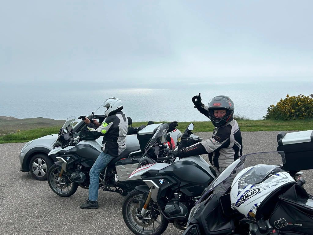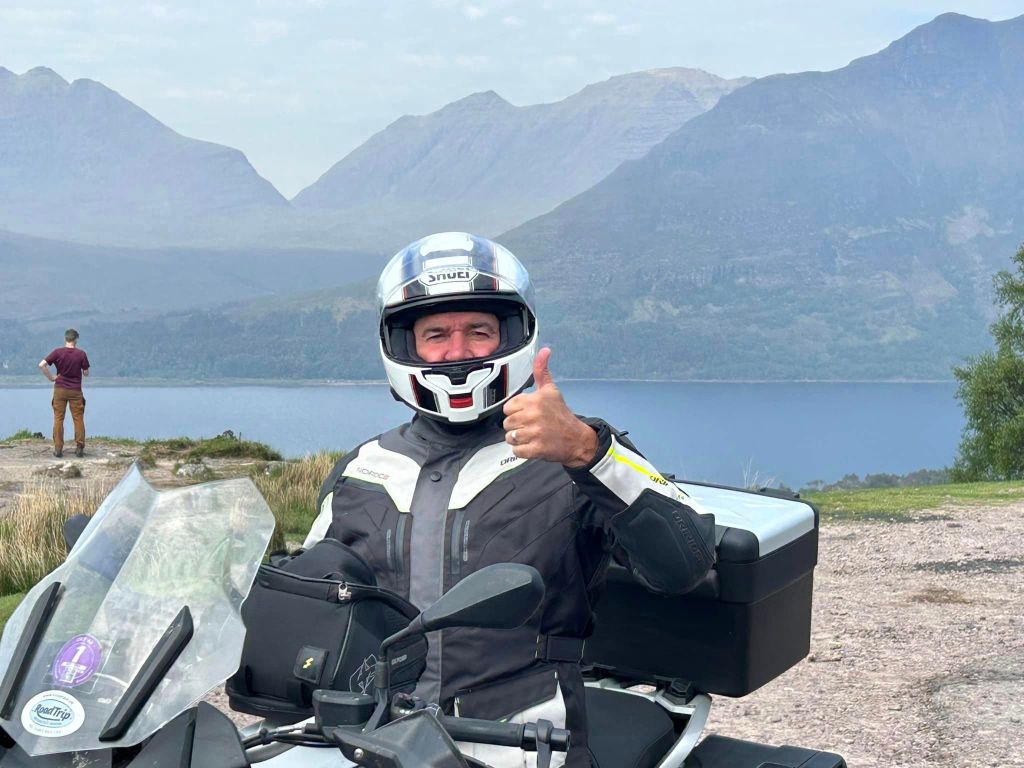 The NC500 becomes a one lane track with many passing bays. The RV’s make it slow going. We meet our first Scottish Karen. She approaches at a photo stop & abuses us for making her late for work cos she couldn’t get past the bikes! Like that was going to happen. She has singly abused 6 bikers. She takes photos of our bike regos so Tony responds in kind.