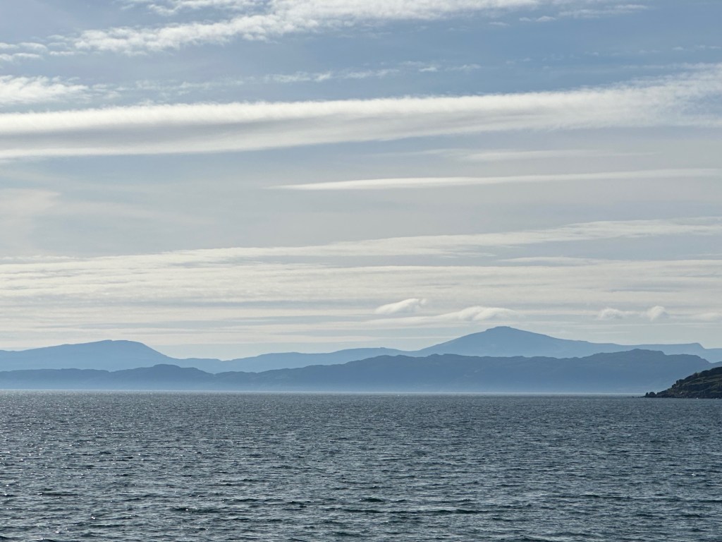 Well it does. We head down & the air clears. We see an offshore oil rig. Off to Skye.