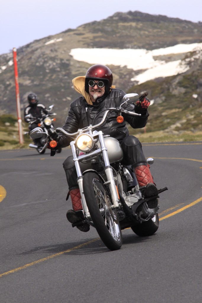 A quick rest a mingling session with other riders and we were off again to Eucumbene dam. Big picture op. Singo was in charge of framing the shots which were many and varied. Time to try out the big bikes with Sarge and Mike taking the challenge. It was then on the gumball rally home. Gibbo streaked ahead on his silver Harley….but wait for it Singo was on his tail pushing those needles on the Kawasaki 500. Russ was struggling on full throttle with the whole group over taking. What a blast!