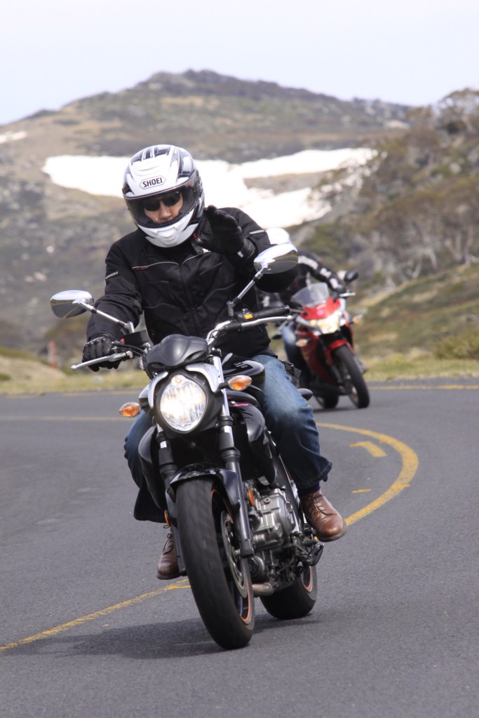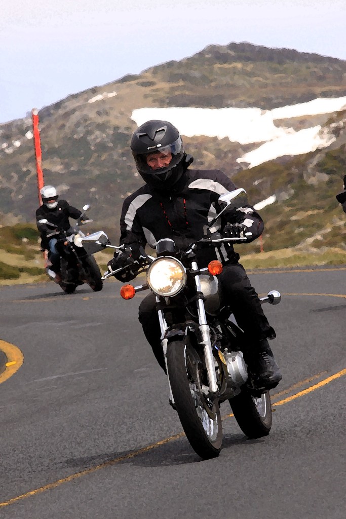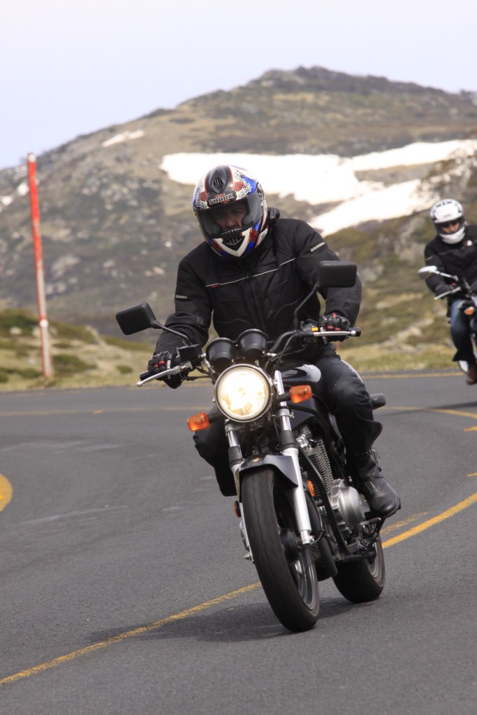 A quick regroup in the ski tube car park and then the slow ride into Thredbo. This proved as much of a challenge as riding fast for many of us. High throttle, riding clutch, foot beak on and stay uptoo many things to think about. Another amusing dinner where the drinks were flowing with a recollection of the day.
