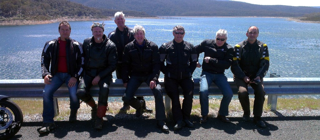Given Russ and Singo were riding from Canberra they arrived at Thredbo quite refreshed before lunch; so after they rearranged everyones rooms to suit themselves they hit the road to Khancoban where they took various pictures in male model mode. After a quick turn around at the Snowy Hydro plant they arrived back at the Lodge to see everyone had arrived. It was a joyous reunion as everyone managed to get down there unscathed.