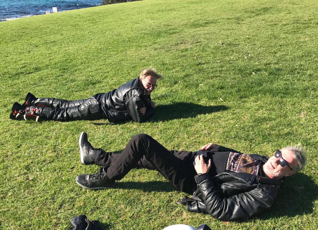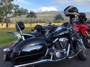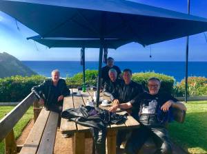 During the course of the day, it becomes apparent that the fabric of the group has changed. We have become multicultural with a mix of road bikes and cruisers. Gibbo, Hydro, Mike & Russ have sold out. Lewy, Boxy & Singo uphold the original purpose of the Group. Im thinking Sons of Anarchy. Integration is far from simple and sledging enters the discourse. The confusion is palpable in some. Russ wears a Harley jacket whilst riding a Ducati. He is obviously reluctant to cross over.
