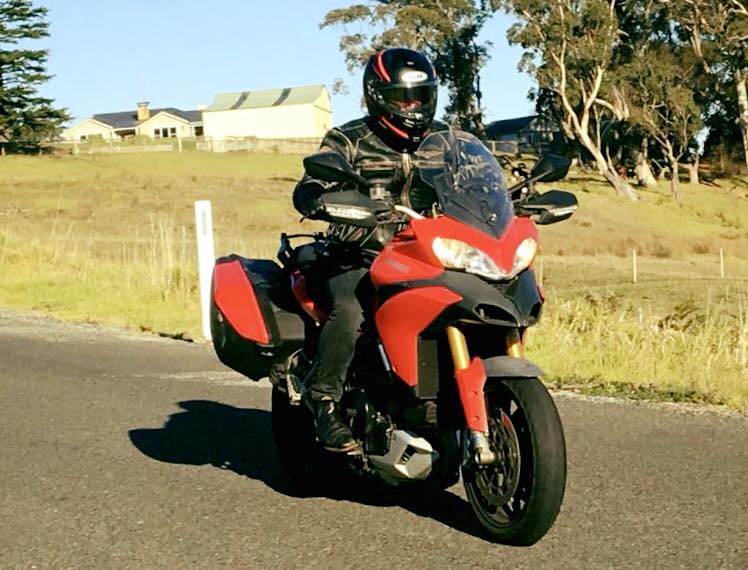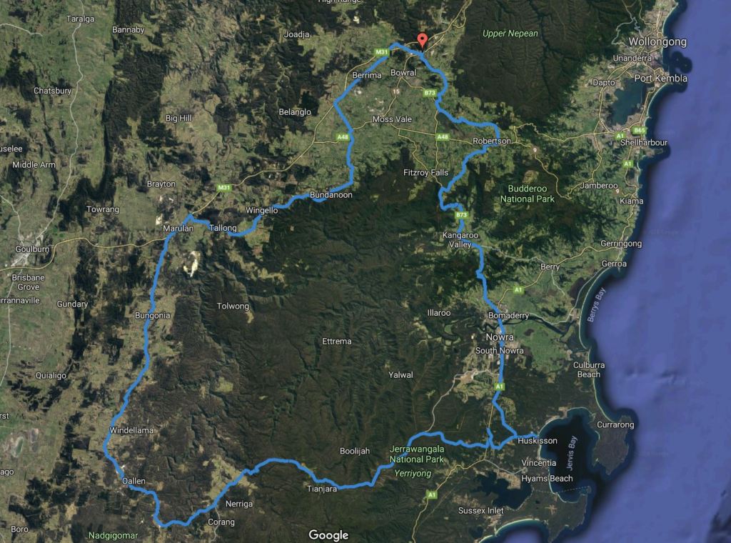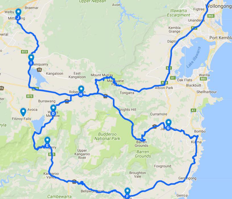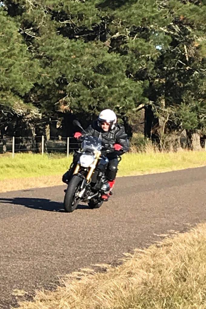 We head north to Nowra and up the Jamberoo Road back toward Mittagong. Gibbos top box flies open scattering his strange array of possessions over the road. We stop for a few riding photos.