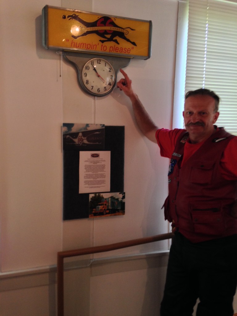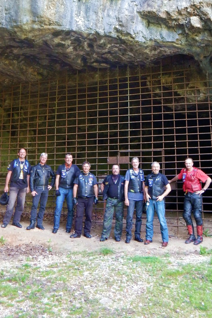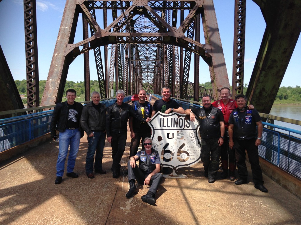 Picked up Richo on the way and some off us now stripped down to t-shirts and vests. Freedom! Stopped at the Chain of Rocks Bridge on the Mississippi (the big muddy) for some photos. We were now in Missouri. Further stops in the afternoon at the Route 66 museum and the Meramac Caves (hideout of Jesse James). Photo of the backdoor is attached. Goal achieved. No ‘back door’ jokes worthy of reciting.