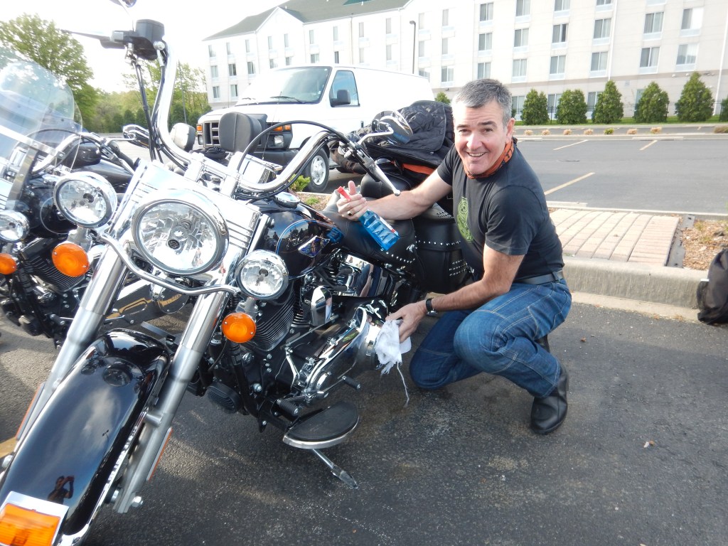 A final hour into Rolla. Dinner at the ‘all u can eat buffet’ but the Foxes are determined. We want broccoli and greens with our huge ribs, steaks, waffles and syrup! Drinks after dinner in the Redneck carpark outside our rooms and bed at a reasonable hour. We are here to ride!!