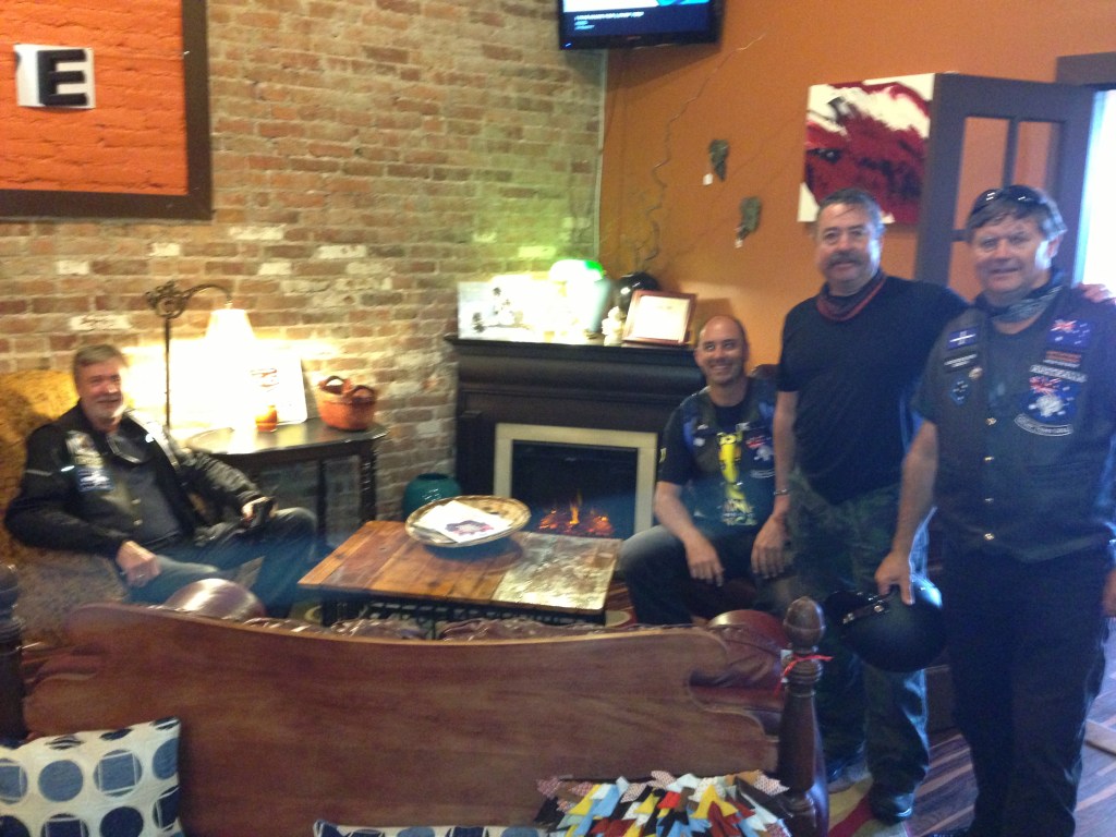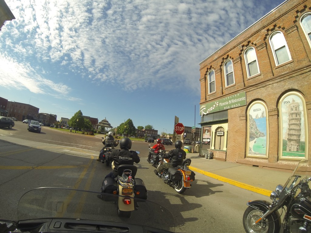 A ride through lush green countryside took us to Carlinville, a quaint little town with a square. We were met by some ‘mighty fine folks’, a welcoming committee of 3. Br. Spencer was the first to engage this group as he’s smoother than the rest of us. We bought some pins, coffee and corn pipes (Lewy & Boxy) and departed with an enthusiastic send off from our new friends. I wonder what they do for the rest of the day?