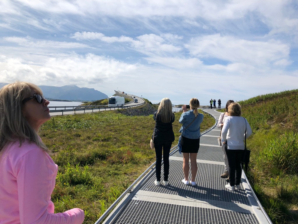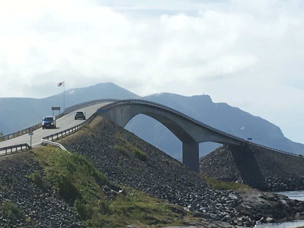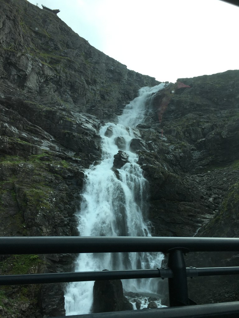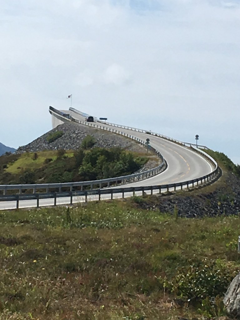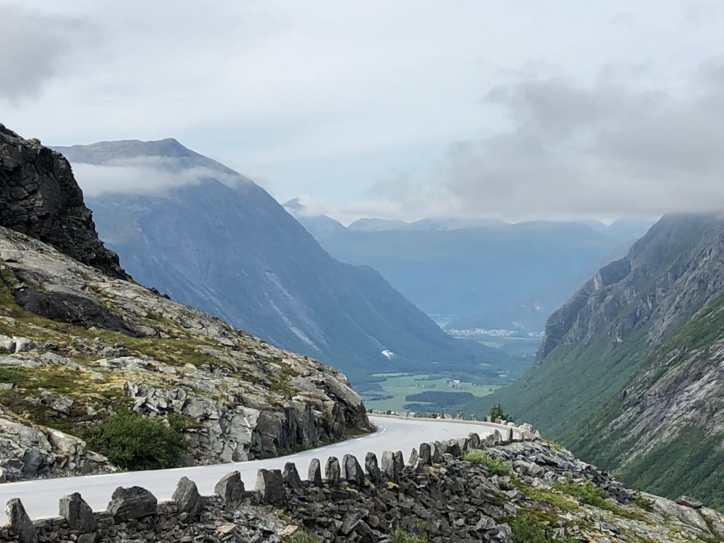 Girls recovering from jet lag. Boys starting to feel the effects of 10 straight days of riding. After several laps of the Trondheim industrial estate looking for Avis & fuel (Boxy didn’t need any!), we took off for Geiranger. The ride this morning was fairly uneventful other than the Foxes displaying their fabulous skills by overtaking the girls in the car – ducking & diving and generally being marvelous and strutting like peacocks. The Ferry to Andalsnes marked the start of one of the magnificent bike rides. The Ferry however, gave us the chance to review the chicken strips on the bikes. “DEFINITION: chicken strips The strips of unscathed rubber on the outer edges of a motorcycle tire caused by the rider being too “chicken” to lean the motorcycle all the way to the edge. Used as a measurement of a rider’s skill in most cases.” A picture of the loser is attached. Without calling anyone out, he has a couple of days to improve the position. We then climbed to the summit of Trollstigel, a long series of hairpin bends. Waterfalls chundering down on both sides. We arrive at the summit with lots of snow on the ground. Photo opps. Then off we go down the other side of the mountain and into a magnificent long & deep valley. Another Ferry and then a climb to Eagles Nest and then drop down into Geiranger on the water. Arrived late after a huge day on the bikes. Dinner at the hotel.
