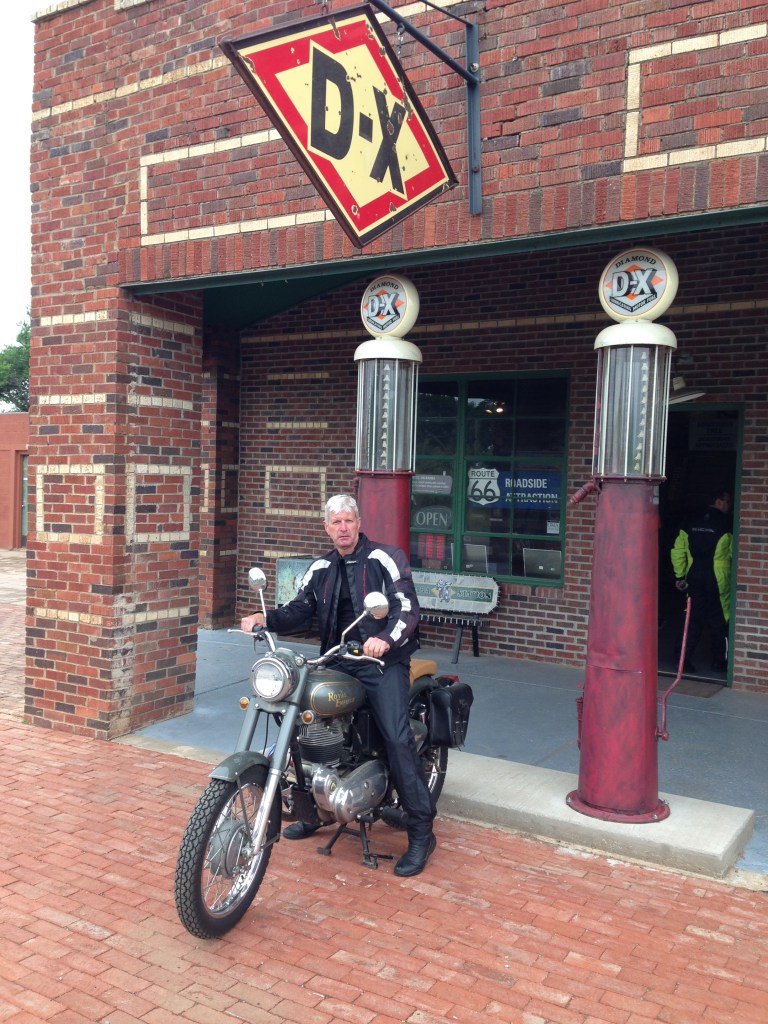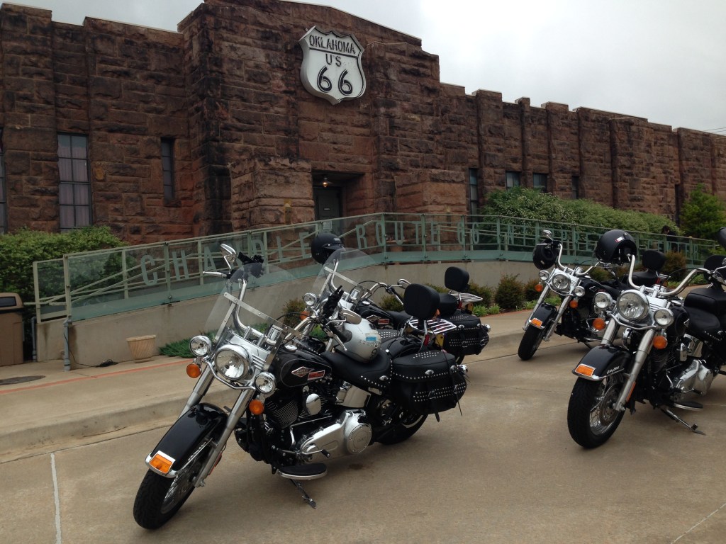 Here is where the pavement of RT66 follows the contour of the land as if it’s always been there. We cover a part of the old west’s Indian country between Tulsa and Oklahoma City. We head west through El Reno, over the Mile- Long Bridge, near Bridgeport and into Weatherford, the heart and soul of route 66 country. Stop at Chandler for the “Route 66 Interpretive Centre”, Seba Station for the Bike Museum, Arcadia to see Mr Sam at the Big Round Barn, before the ride into Weatherford.