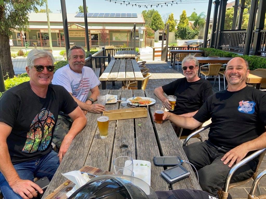 Weather was perfect as we traversed the Berowra Ferry followed by the Sackville Ferry and headed north up the Putty Road & through the Hunter Valley onto Denman (lunch at the pub).The afternoon ride was sublime. We navigated the Yarrawah Rd across country (unmarked road, no traffic) arriving Mudgee about 4pm.Shower and then onto Paragon Hotel for a few drinks. Dinner at the Cobb & Co motel tonight. A night of jocularity…..of course.460kms today. Foxes are in ebullient mood. As an aside, Br Lewy has advised that his riding opportunities with us will be limited going forward as he has committed to a new role. Celebrations all around.