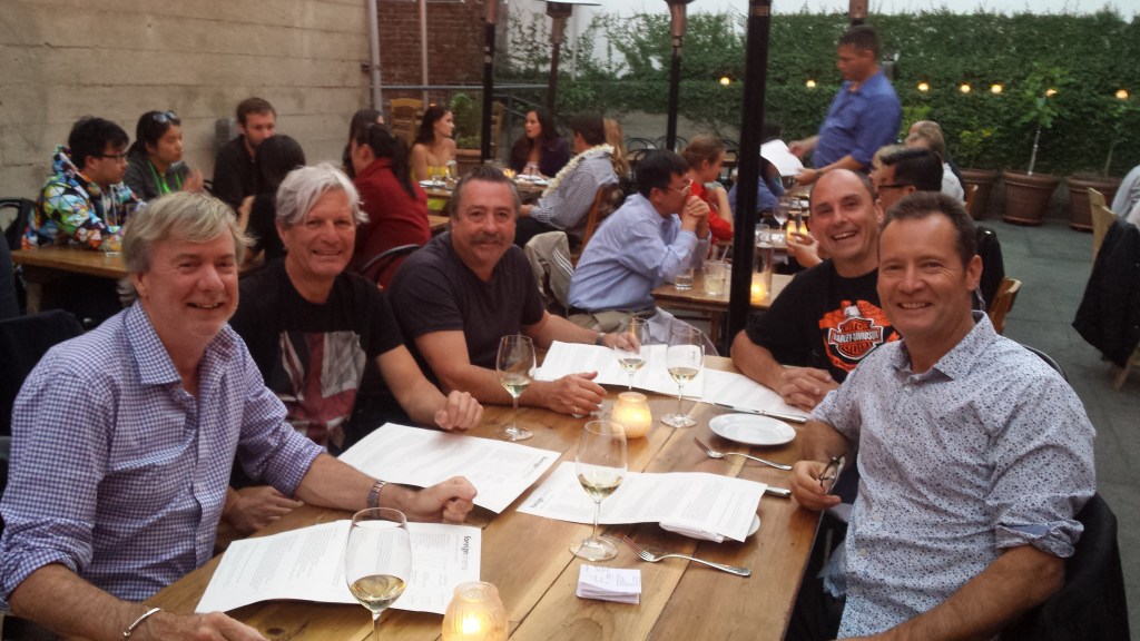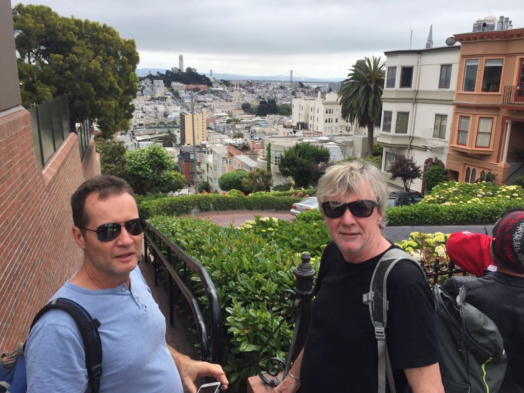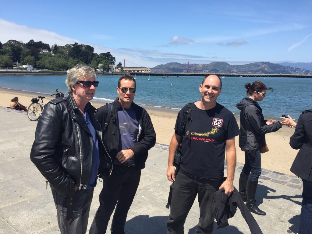 Day One, was twice as long as normal. The extra time was well used. Departure from airport was uneventful and without any spousal support or the refuge of the Chairmen’s lounge. Arrived San Francisco about 9.30am Friday and headed to hotel. Rooms not ready so walked to Fishermans wharf (significant development over recent years) to pick up our Bay to Breakers packs at pier 35. Lunch at the wharf. Then checked in to Holiday Inn and crashed out for a couple of hours. Steve waiting to be collected by a mate at 4.30 so crashed on couch in hotel foyer. His request to wait in our rooms denied (breach of support group rule!). After this refresher we headed out for a quiet dinner (NOT). First stop was a beer at The Saloon on Grant St (oldest bar in SF) and listen to some rockabilly. Dinner at La Boheme on Colombus and, in the absence of any obvious alternatives, returned to the Saloon. “Amy-Lou and the Wild Ones” were in full flight. Great blues/dancing. Weird, everyone is very friendly in these places. Mike and Neil looking good on the dance floor and cleaned up! Bourbons had a little coke but unfortunately in hindsight not nearly enough. The night got away from us and we were still there when the band finished at 1.30am. Time for some pizza next door with our new friends and back to the hotel at 3am. See ya late tomorrow! Lucky we are not riding!