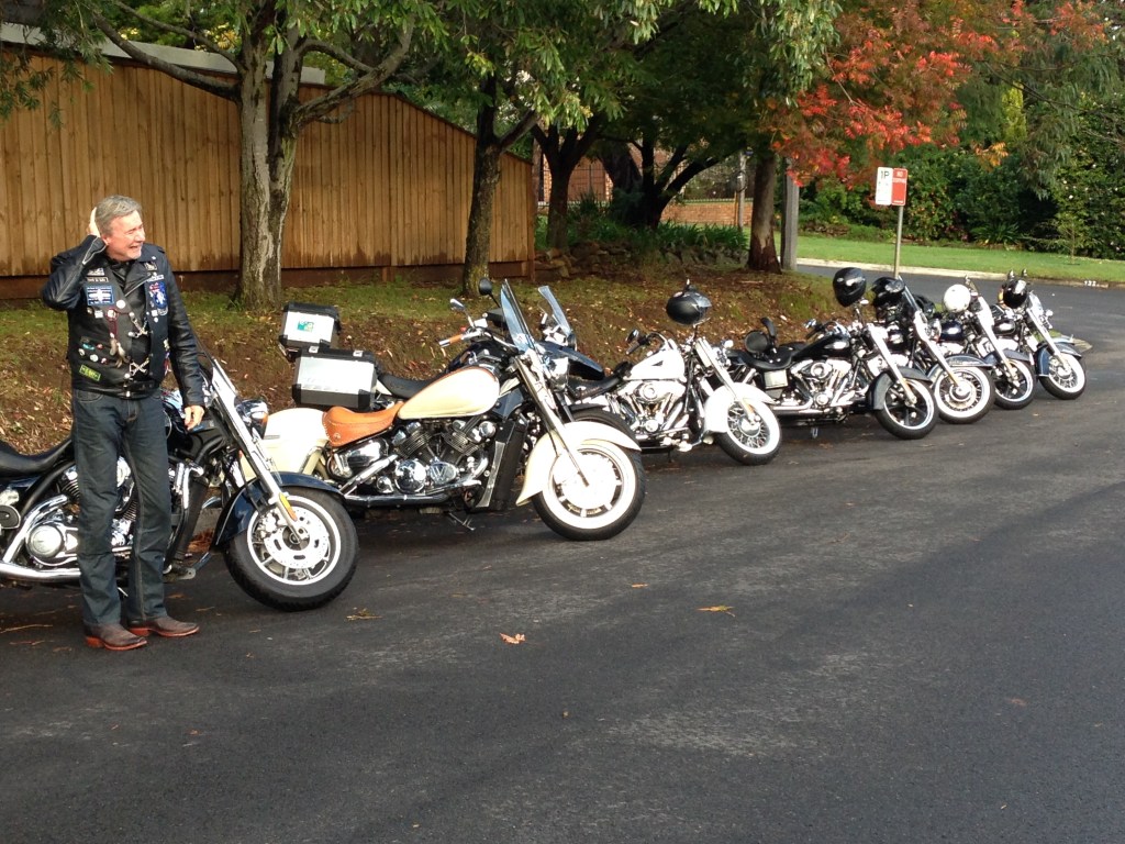 On a fairly cool May morning the Foxes were alert and assembled at the Princes streets shops. After route 66 we were able to park the bikes close together to make it a formidable sight. This was a bitter sweet trip, given we had lost our brother Ash only a few months before and we were determined to remember and rejoice the great time we had with him.