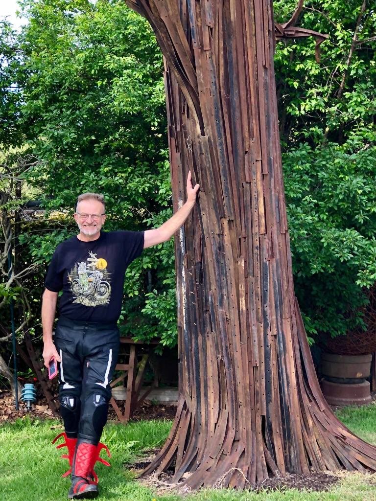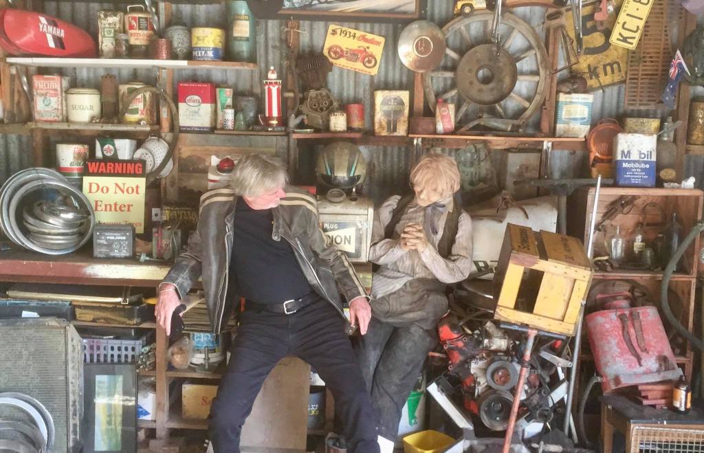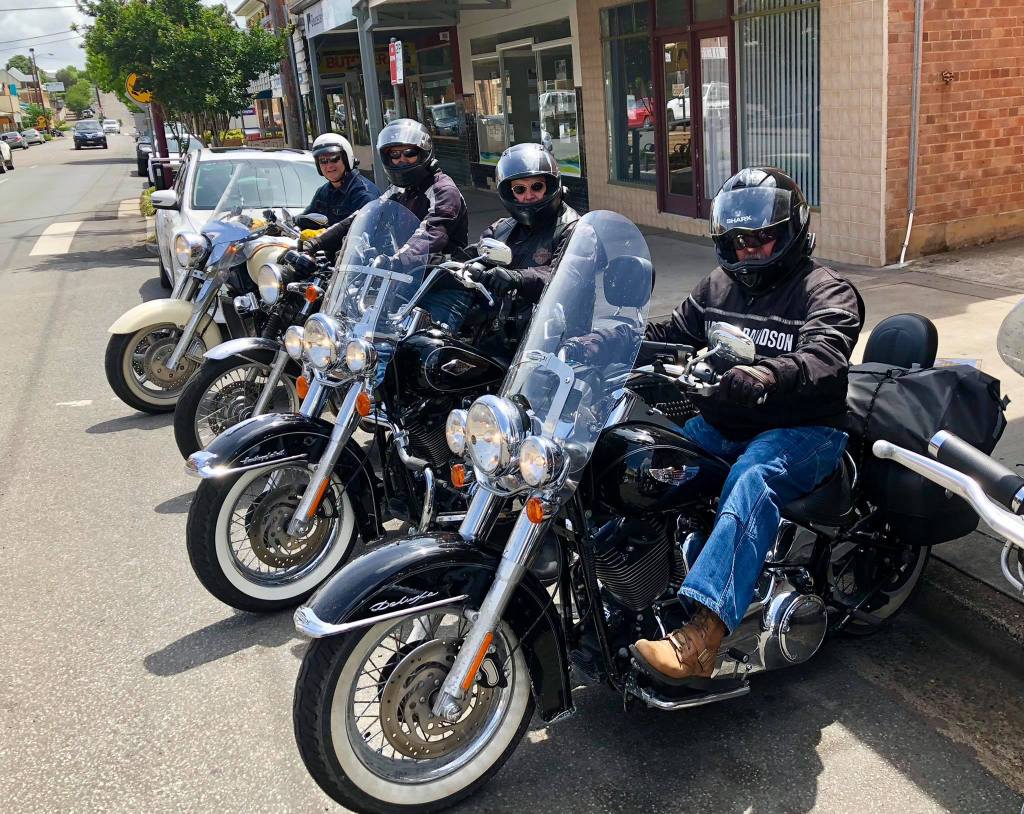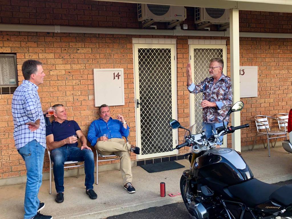 Up early on a crisp still morning. Breakfast at Walcha Royal cafe, a very curious place. An old tool shed (Singo), old bikes (Tony), metal tree (AndyG)……& solid breakfast.
