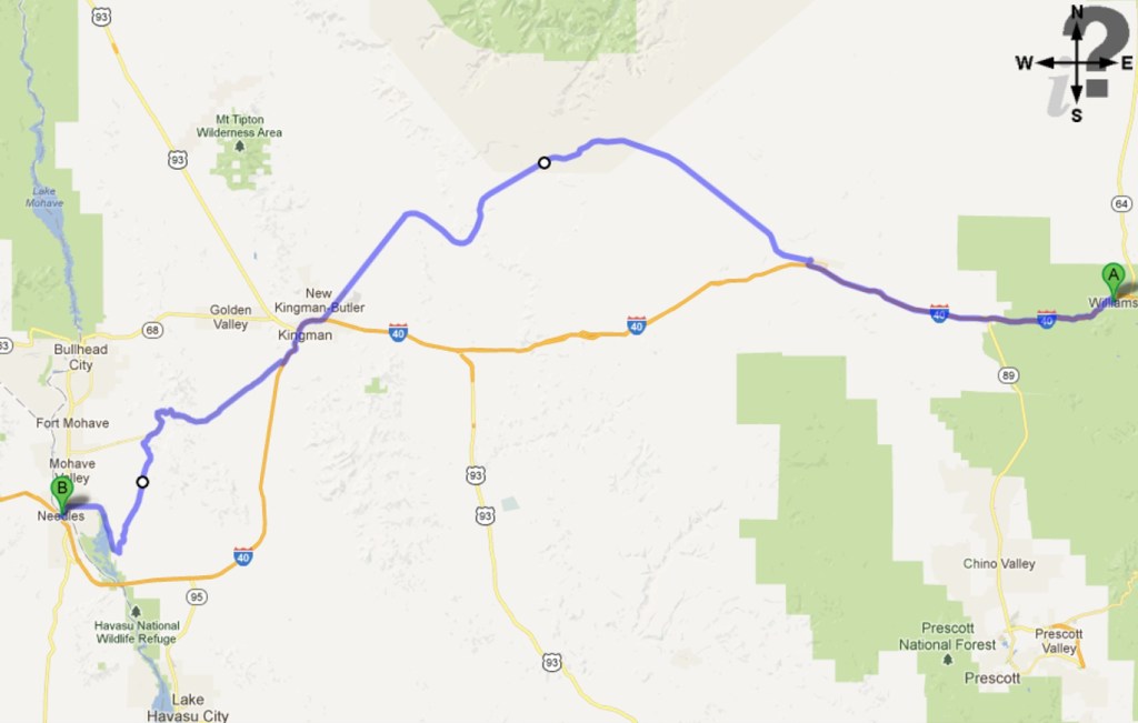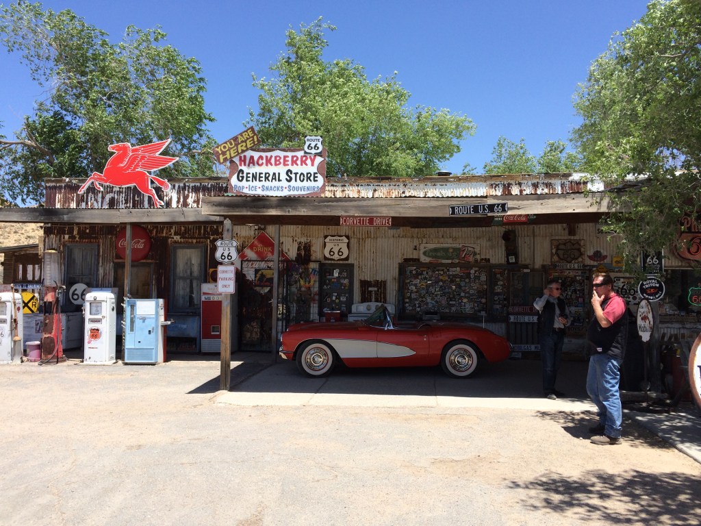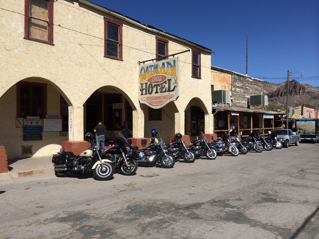 From Williams we ride further west on the old “Mother Road”, which is bending north here, coming down from the highlands, through the Indian town of Peach Springs into Kingman – considered to be the “Heart of Historic Route 66”. As we continue we get to the old western town of Oatman and finally to Needles, our stop for the night.